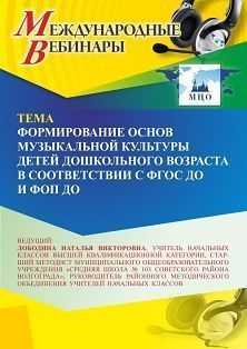 Вебинар «Формирование основ музыкальной культуры детей дошкольного возраста в соответствии с ФГОС ДО и ФОП ДО»