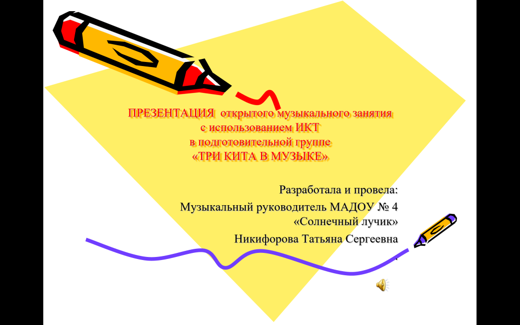 Презентация открытого музыкального занятия с использованием ИКТ в подготовительной группе «Три кита в музыке». Подготовила и провела — Никифорова Т.С.