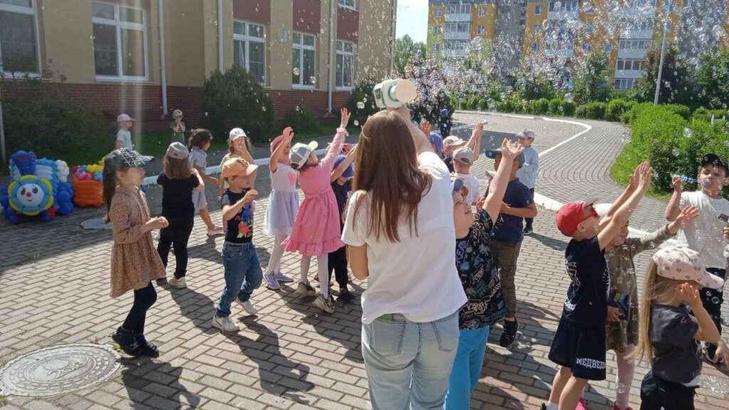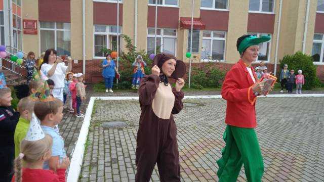 Мероприятие началось с 7.30 утра. Звучала праздничная музыкальная подборка, создавшая празднично, лёгкое настроение у детей и взрослых. В 9.30 все группы собрались на центральной площадке, чтобы поиграть и потанцевать вместе со сказочными героями, которые пришли к ребятам в красочных костюмах Лета, Игрульки и Б. Яги. Герои развлекали ребят шутками, играми, загадками, общими танцами и флешмоба. В заключении торжественной организованной части праздника, детям было предложено оставить свои рисунки на асфальте, поиграть с пушкой-фейерверком из мыльных пузырей и потанцевать под детскую танцевальную музыкальную подборку. Дети и взрослые веселились от души и все остались очень довольны.